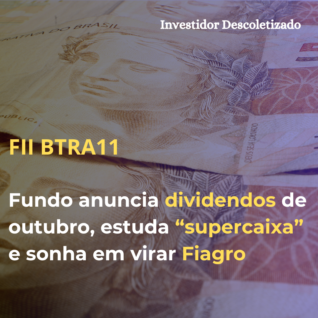 “A distribuição de R$ 0,40 por cota representa um dividend yield anualizado de 8,8%, com pagamento agendado para 31 de outubro de 2025”, explica o relatório gerencial do BTRA11. “A distribuição de dividendos acima da média foi impulsionada pelo recebimento integral da venda do imóvel de Campo Novo do Parecis/MT”, complementa o texto, em referência ao histórico de distribuições da carteira.